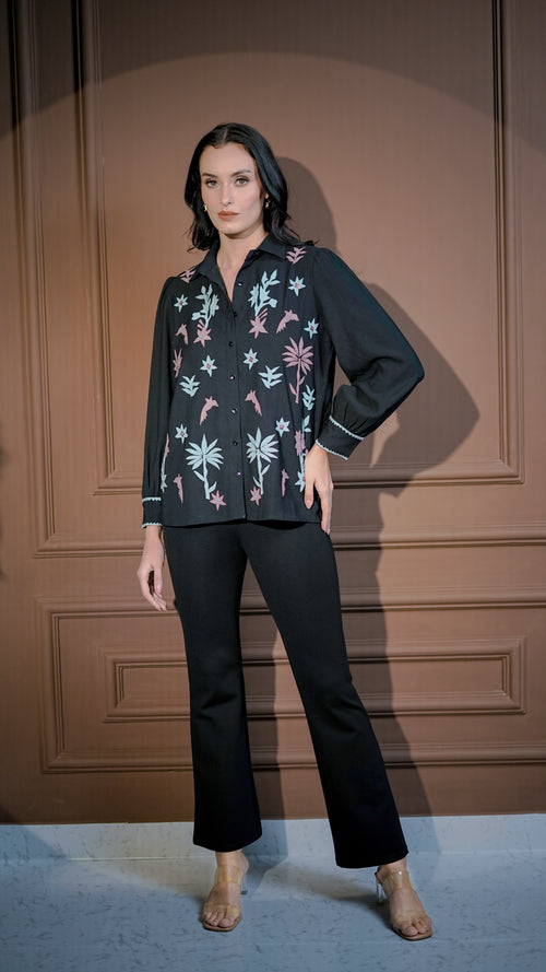 Midnight Bloom Sequin Statement Shirt -