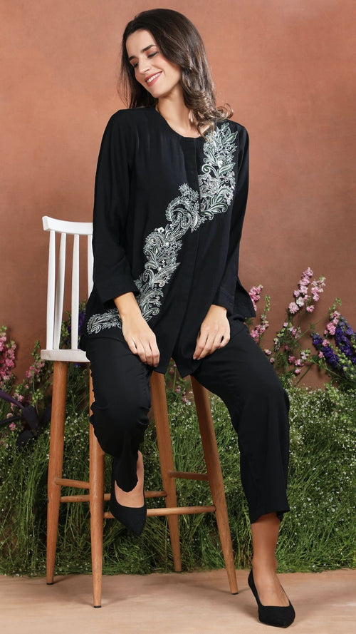 Midnight Paisley Embroidered Co-Ord Set -